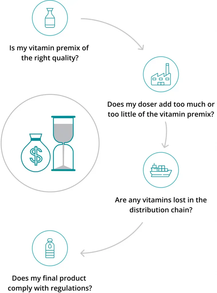For a food producer, out-of-specification results for a finished product can mean discarding an entire batch and significant costs. Controlling that vitamin levels are on target during production greatly reduces this risk