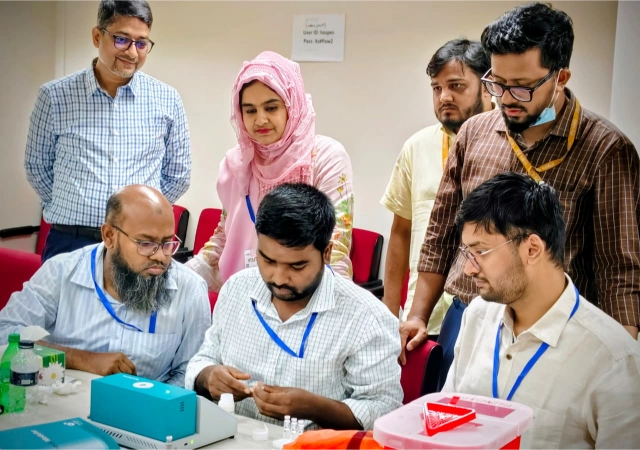 In Bangladesh, a two-day onboarding session in Dhaka in September 2025 brought together participants from SEOI (Sena Edible Oil Industries), icddr,b (International Centre for Diarrhoeal Disease Research, Bangladesh), BSTI (Bangladesh Standards and Testing Institution), the Bangladesh Food Safety Authority, DNCRP (Directorate of National Consumer Rights Protection), and GAIN. Led by Mr. Mridul Kathed, attendees learned to operate iCheck Modular devices for Vitamin A testing, practiced with fortified oil samples, and managed results digitally through iCheck Connect linked to DFQT+. Open discussions highlighted how digital tools can improve efficiency, accountability, and compliance in fortification monitoring.